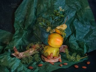 Натюрморт с цветами и фруктами