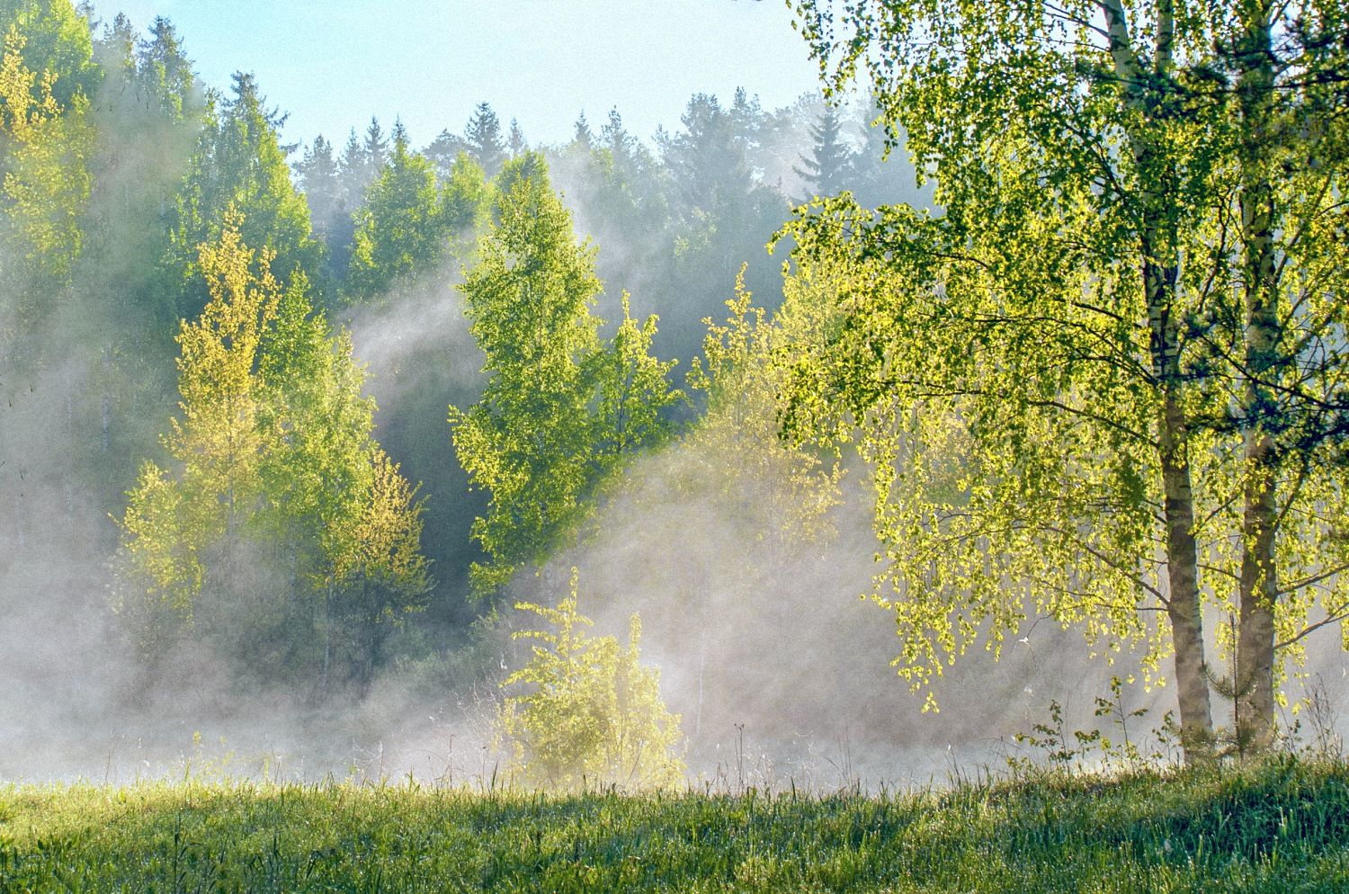 природа пейзаж лето лес березы туман дымка солнце подмосковье, Юрий Спасенников