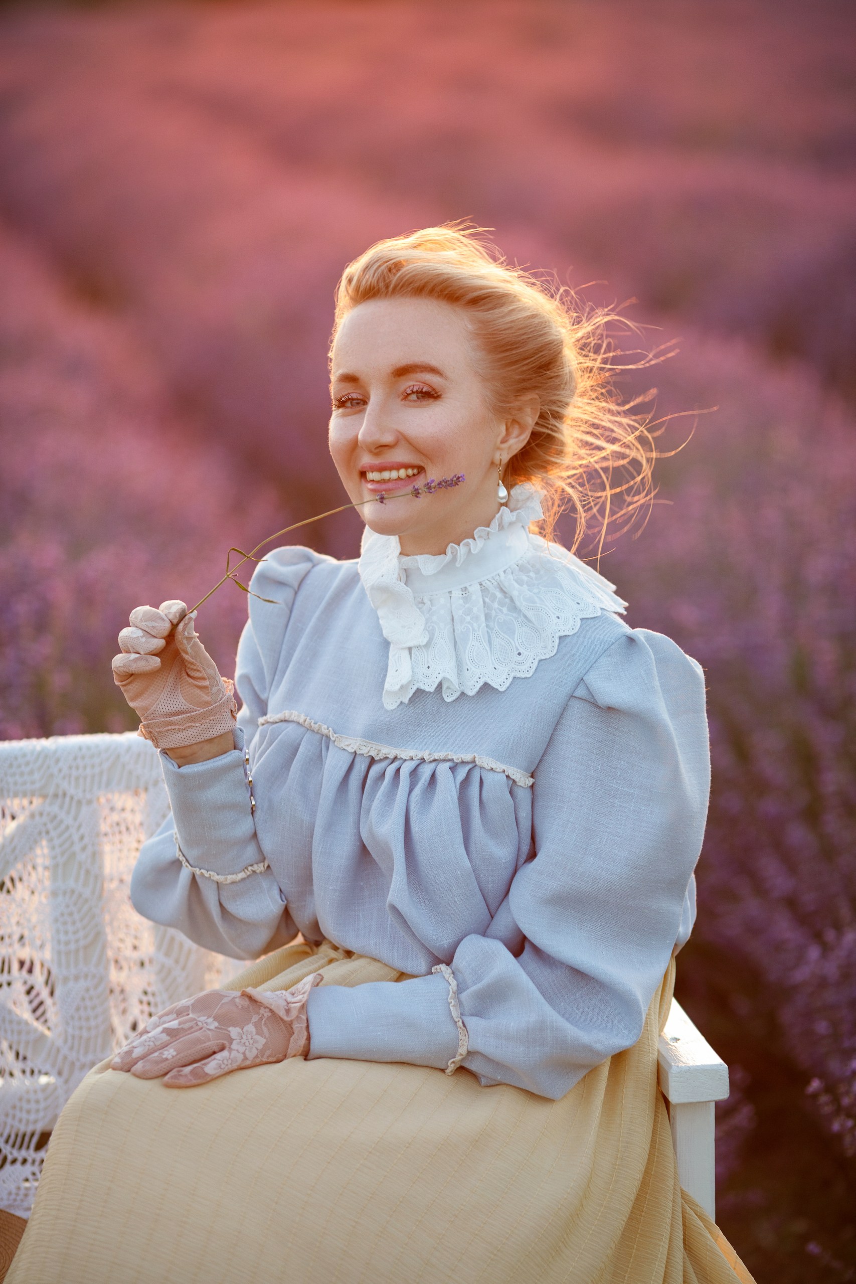 Фотосессия девушки в лавандовое поле, ретро стилизация