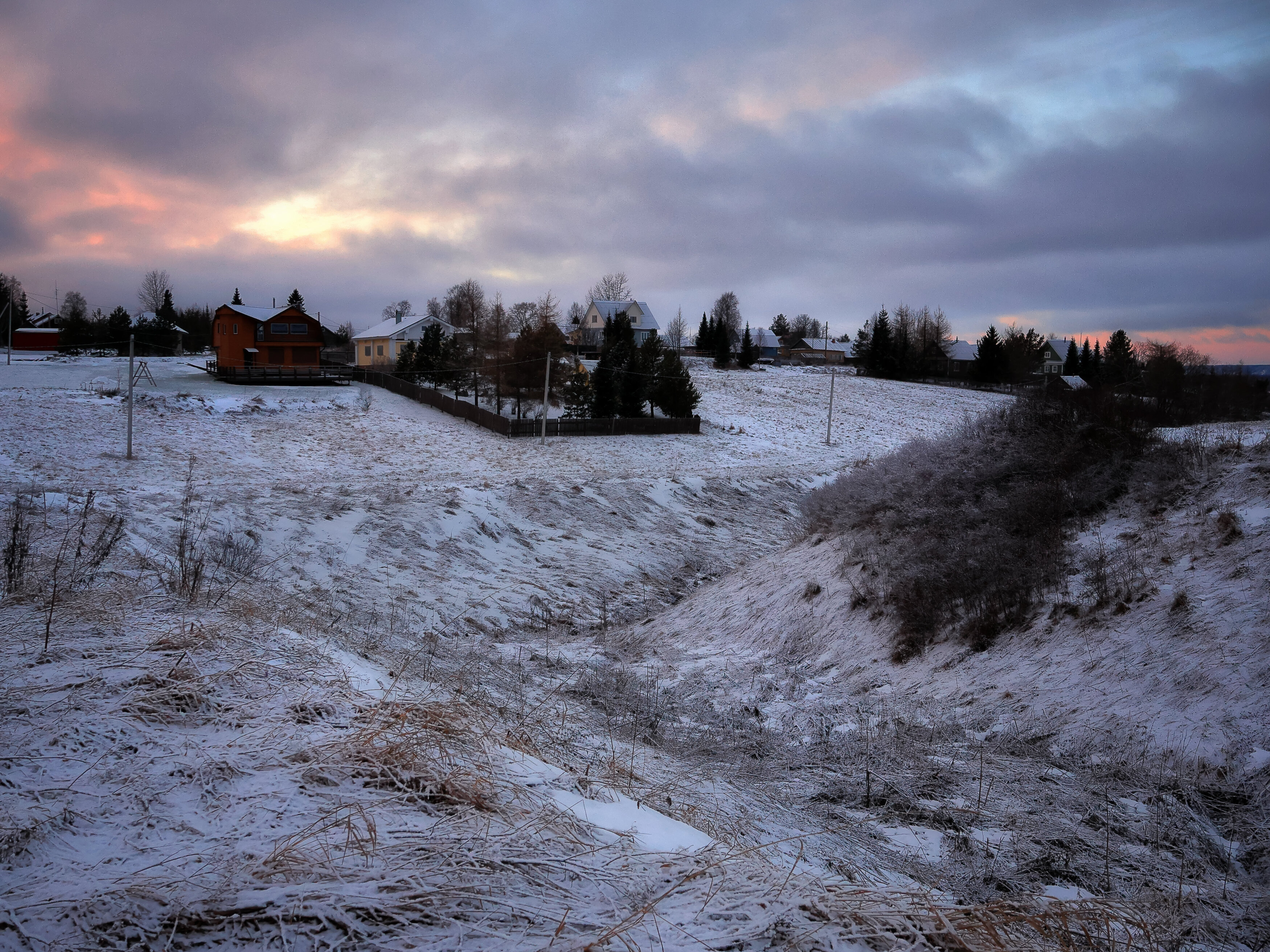 деревня, закат, зима, сельский, пейзаж, Александр Титов