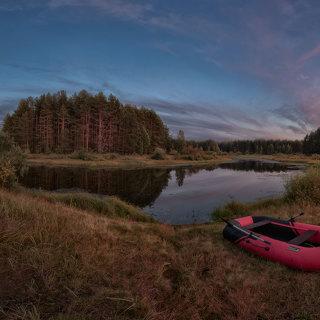 утро выдалось просто роскошным: полное безветрие, цветущая таволга, парящая туманом река...в какой-то момент небо и туман начали светиться розовым...река Большой Юг, Вологодская обл.