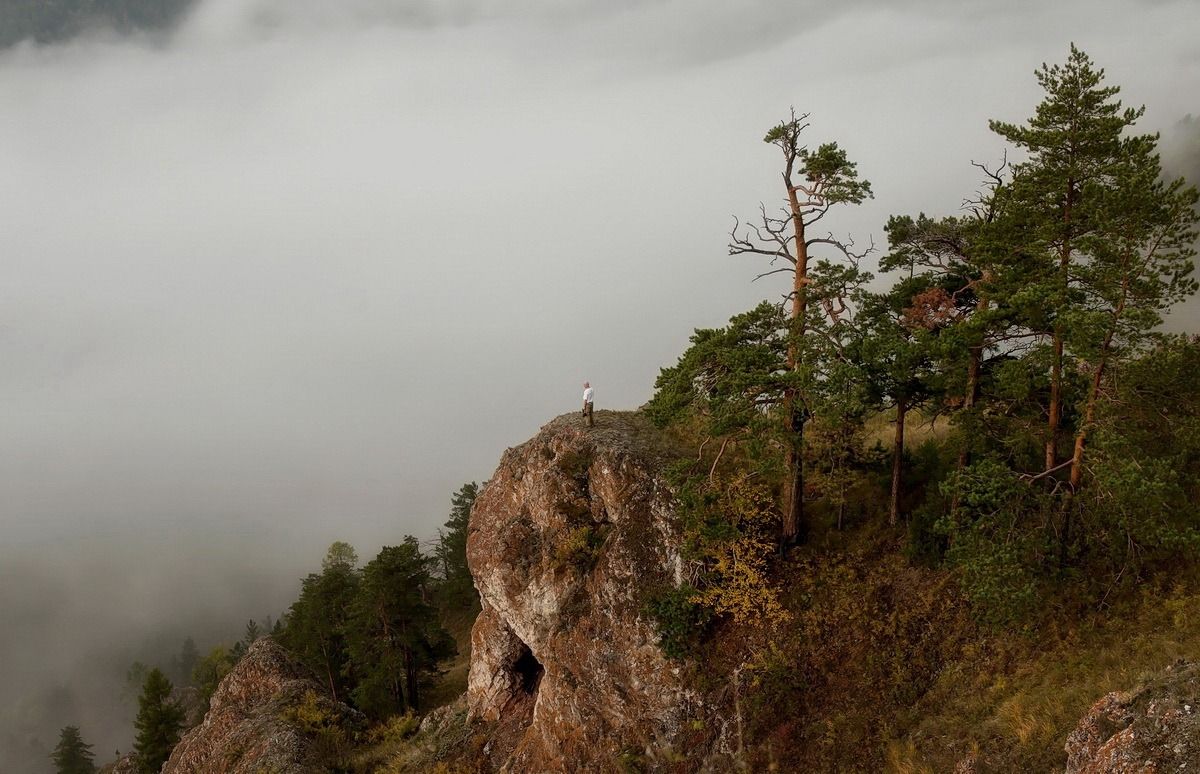 Затерянный мир.. словно все в полусне.. Можно долго в одиночестве сидеть и любоваться туманом.. который то поднимается до тебя с прогретой земли... то вновь отступает.Ты словно летишь вслед за ним..